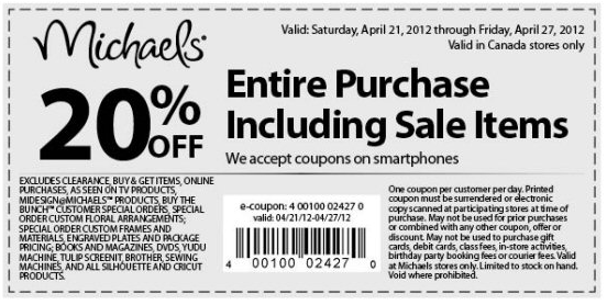 كندا – تخفيض من مايكلز April 25, 2012 by Amira Leave a Comment تخفيض ٢٠٪ من مايكلز على كل المشتروات حتى المخفضة التخفيض حتى ٢٧ أبريل والكوبون من هنــــــا إنشروها لو عجبتكمClick to share on Facebook (Opens in new window)Click to share on Pinterest (Opens in new window)Click to share on Twitter (Opens in new window)Click to share on Google+ (Opens in new window)