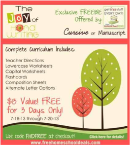 أونلاين : فري للتعليم المنزلي July 18, 2013 by Amira Leave a Comment عرض حتى يوم ٢٠ يوليو تقدروا تحصلوا على Free Cursive or Manuscript complete Handwriting Curriculum إنشروها لو عجبتكمClick to share on Facebook (Opens in new window)Click to share on Pinterest (Opens in new window)Click to share on Twitter (Opens in new window)Click to share on Google+ (Opens in new window)